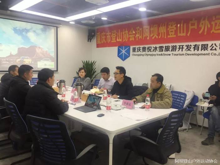 12月19日下午,阿坝州登山户外运动协会秘书长饶瑾携阿坝州登协副秘书长李胜、登协山峰顾问魏伟共同参加了与重庆市登山协会的交流会。